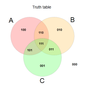 Enter up to 3 variables and a Boolean expression. See the truth table and Venn diagram highlighting the output.